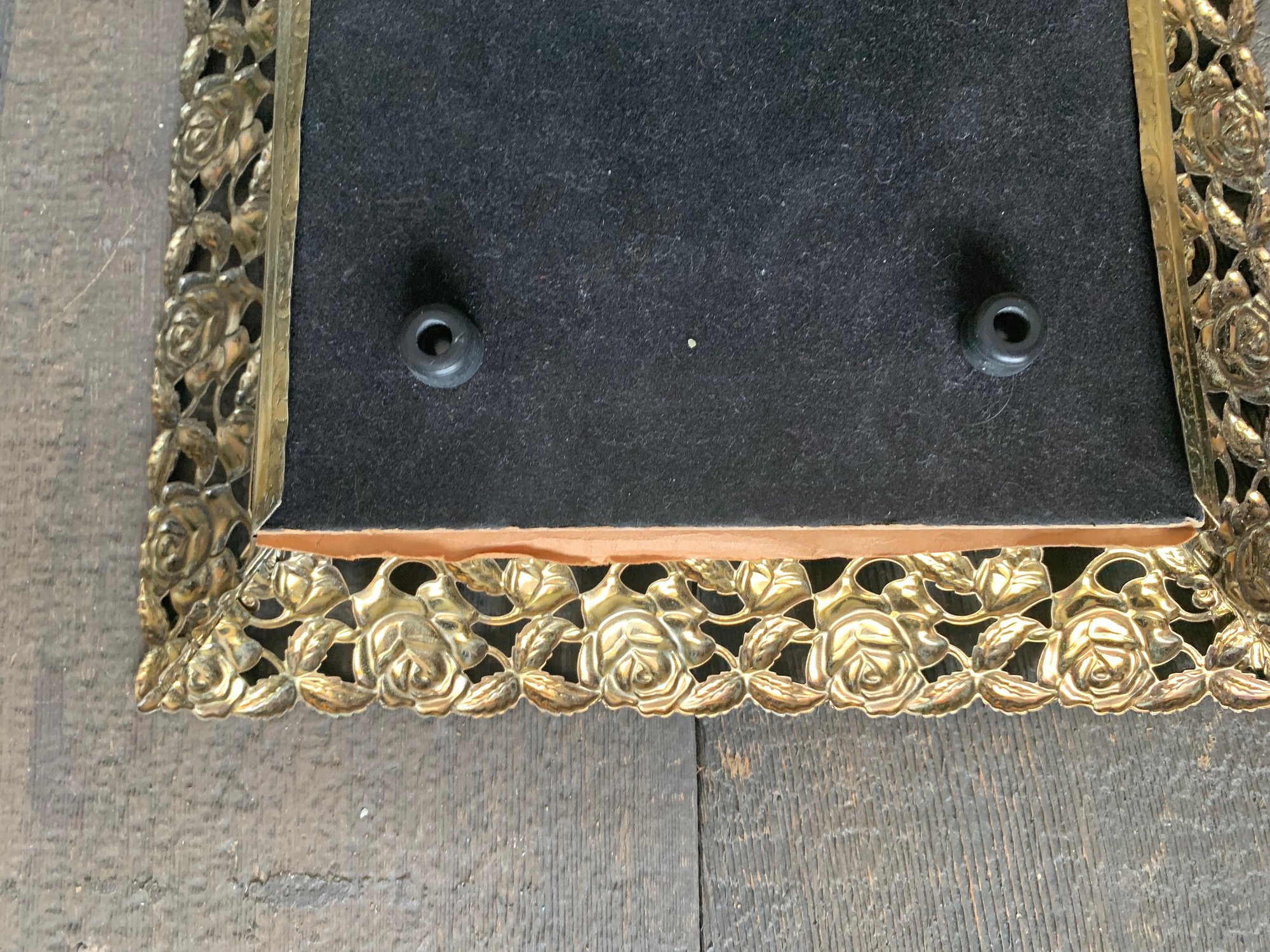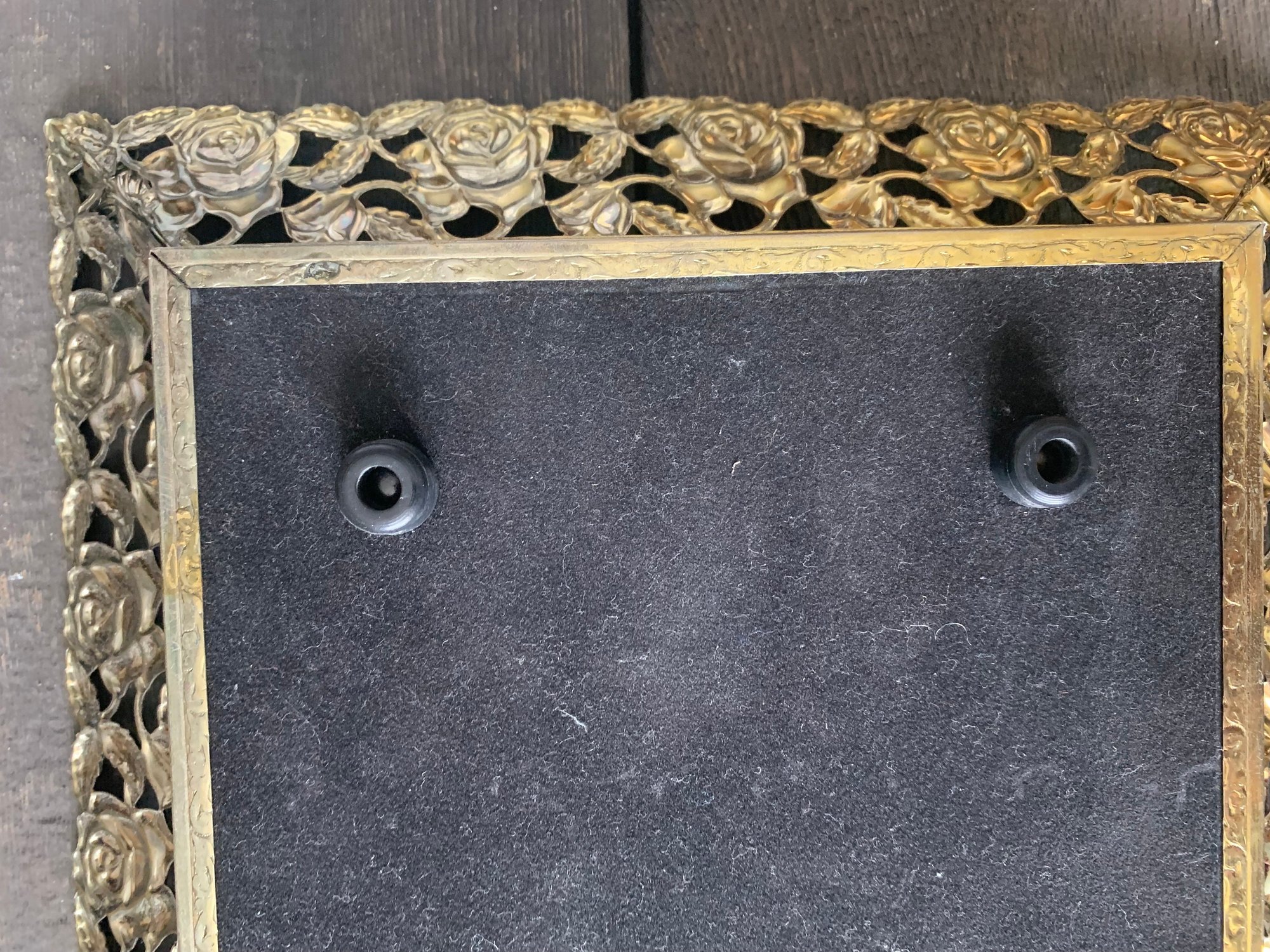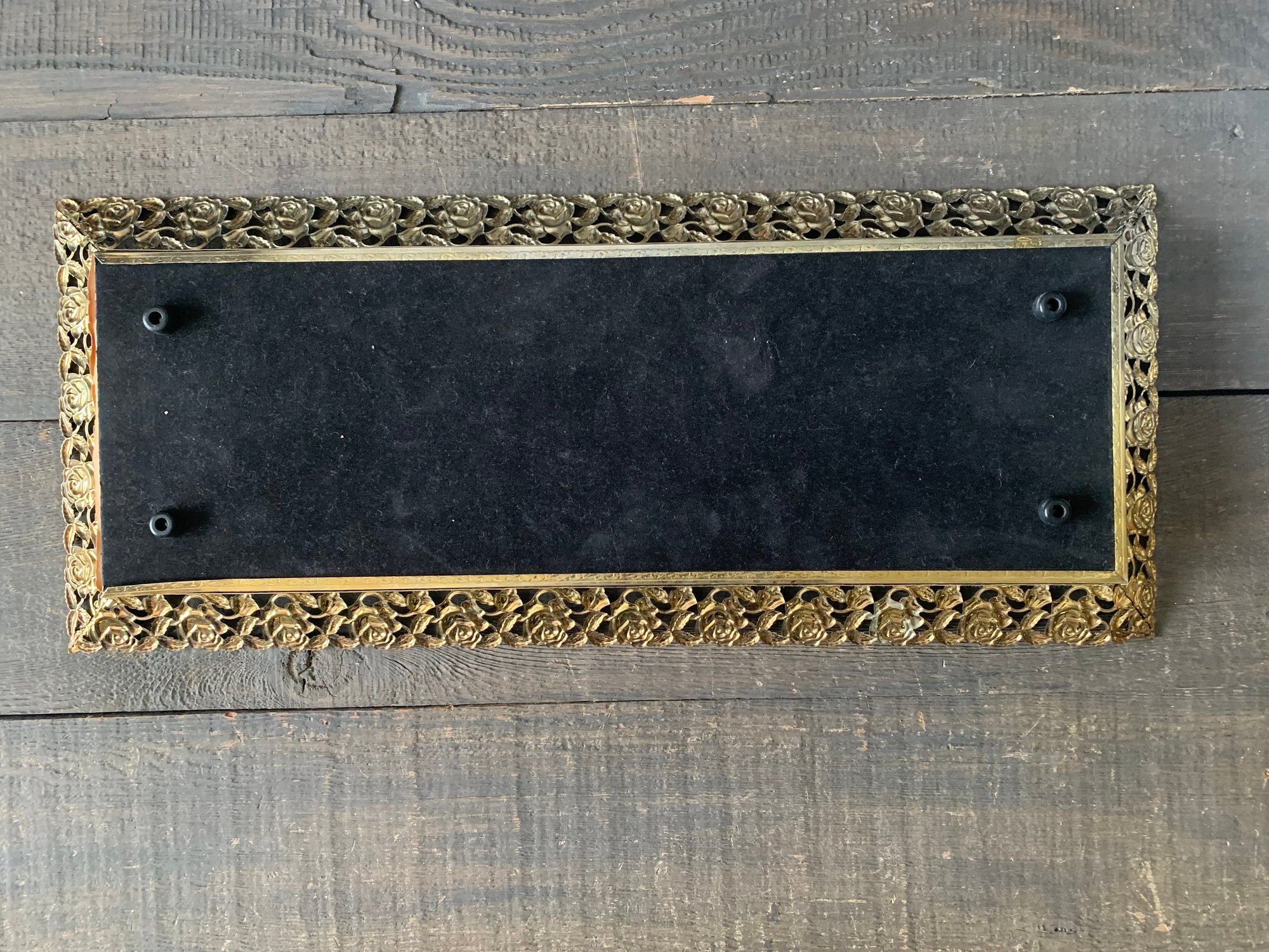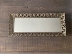 Brass Vanity Tray, Rectangular, Filigree, Metal Framed Vanity Display